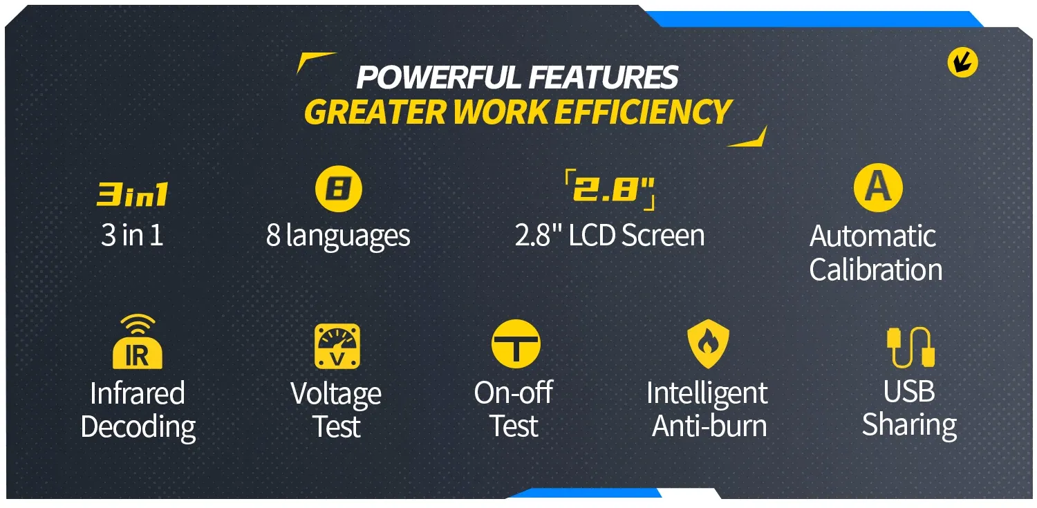 • High efficiency: Automatically identify the type and pin arrangement of the tested