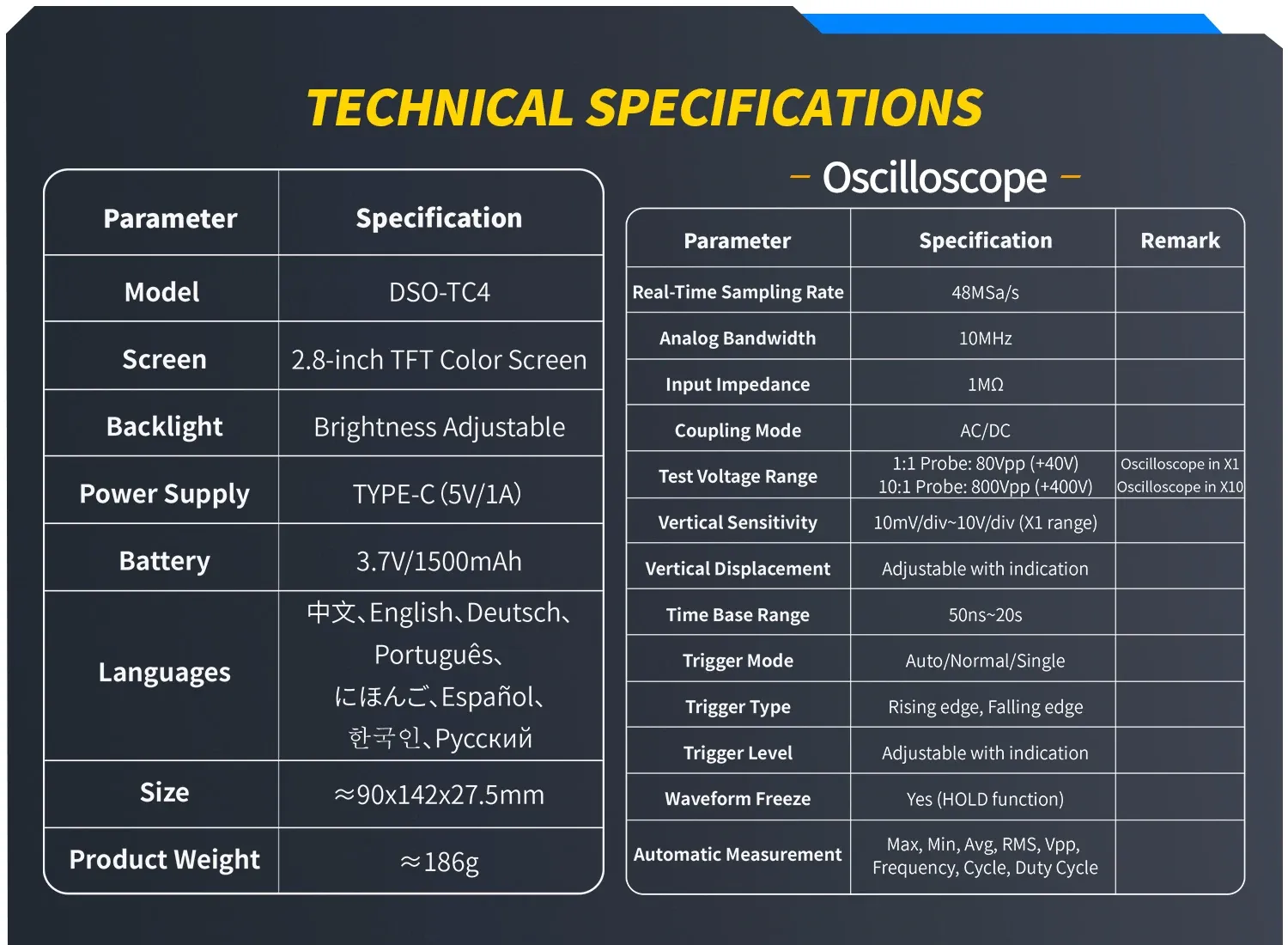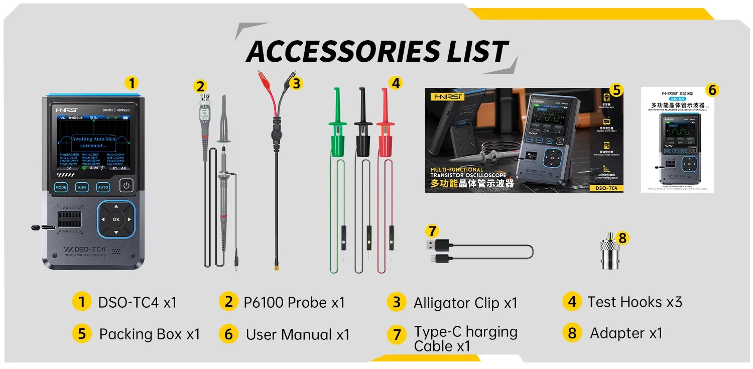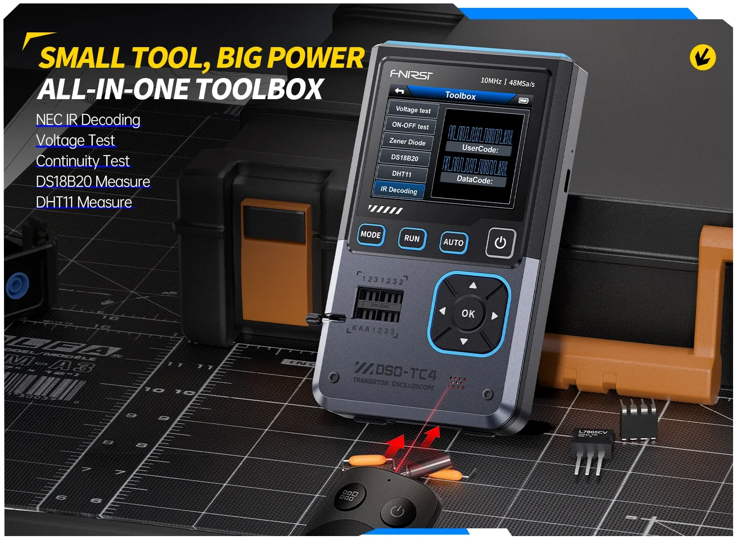 FNIRSI-DSO-TC4 is committed to providing users with powerful, flexible functions and portable operation experience, and is an ideal tool for maintenance and R&D work.