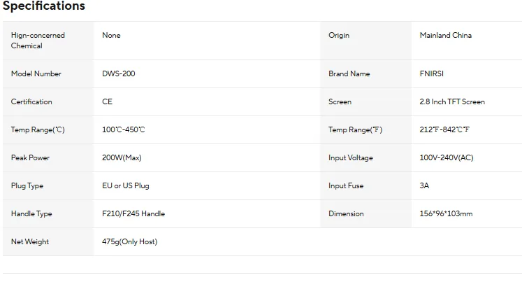 PRODUCT DETAILS OF FNIRSI DWS-200 200W