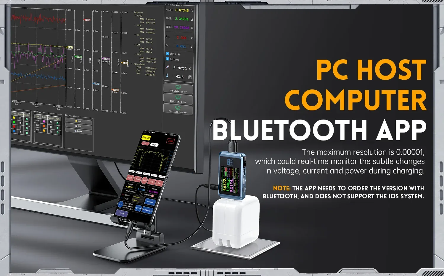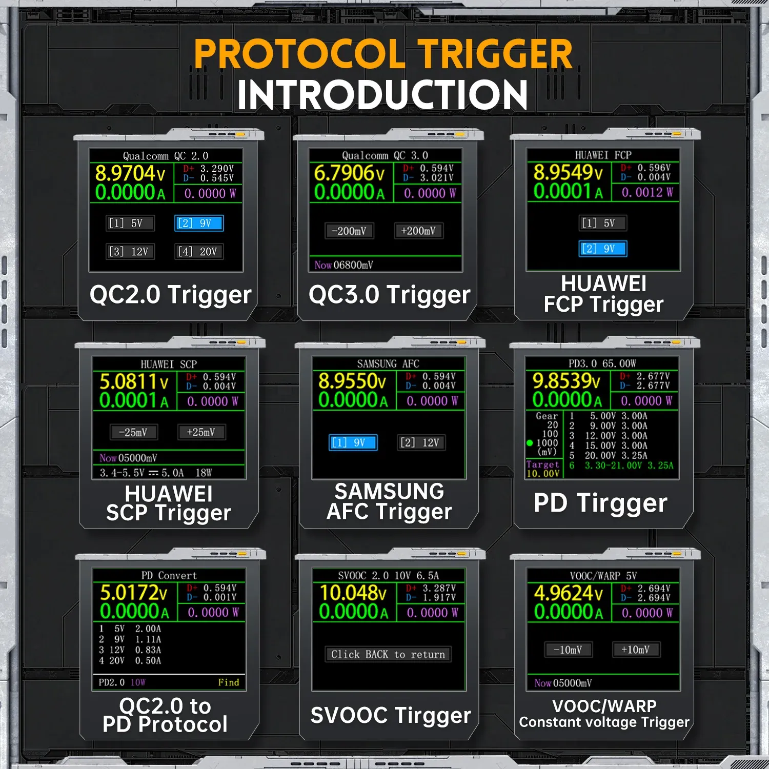 This tool is an multifunction protocol capacity test tool, it integrated USB-A, Micro-USB, type-C interface, with 1.77 inch high definition display screen, using external 16-bit ADC, PD protocol physical chip, which can real-time monitoring of the voltage, current, power, capacity, recharging protocol, curve waveform and so on, come on and try it, it will not let you down.