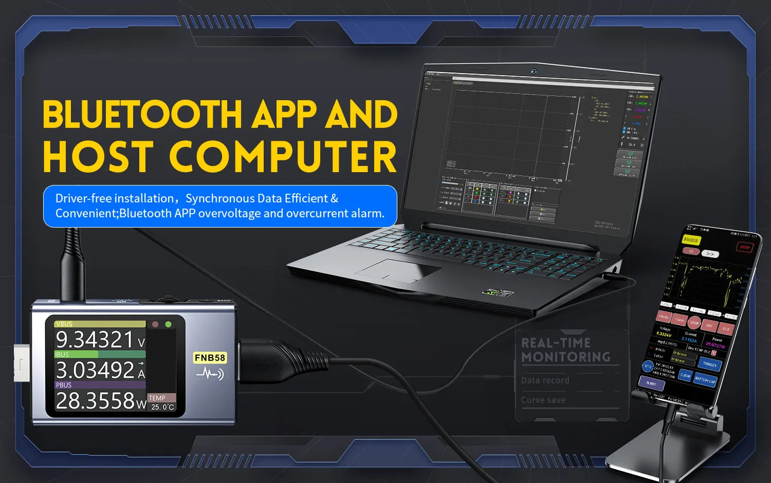 5:Bluetooth APP and host computer, no driver installation, data synchronization, efficient and convenient; Bluetooth APP overvoltage and overcurrent alarm.
