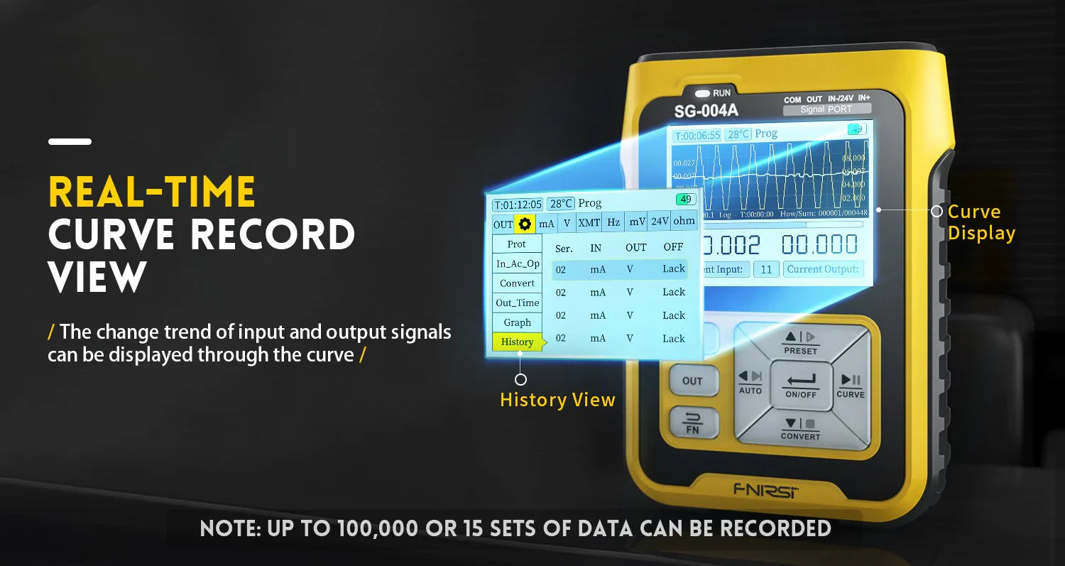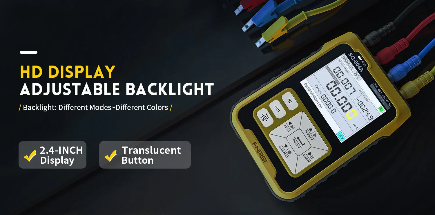 FNIRSI SG-004A signal generator is a high-performance device aimed at the industrial control industry. It can handle various working conditions with one device. The device has a simple but stable appearance design, simple operation logic and powerful performance, and has been loved by consumers since it was launched. Support voltage, current, frequency, thermocouple and other signal mode output and input, support independent 24V power supply, programming mode, real-time curve, historical record, MODBUS communication, firmware upgrade and other powerful functions.