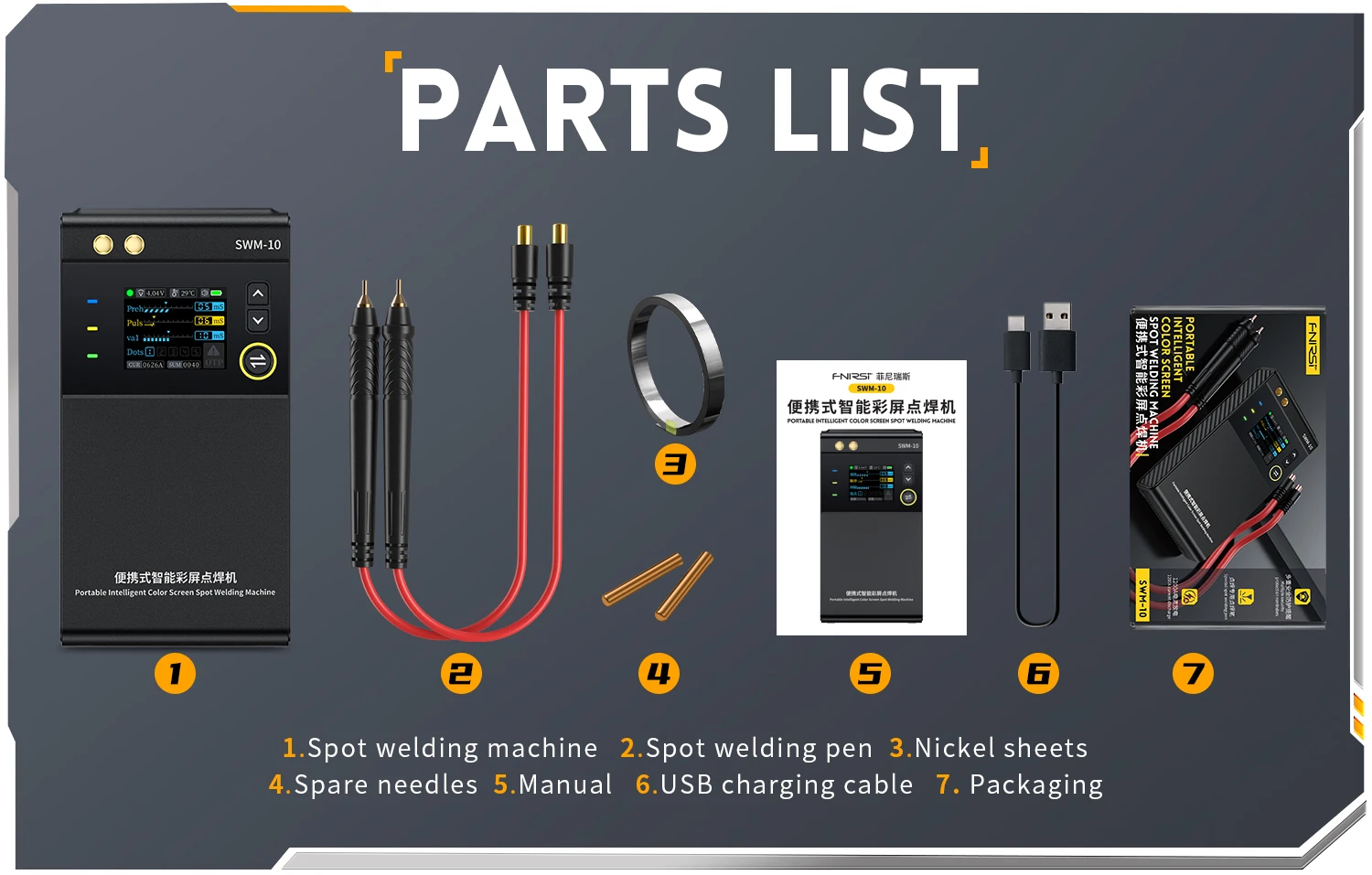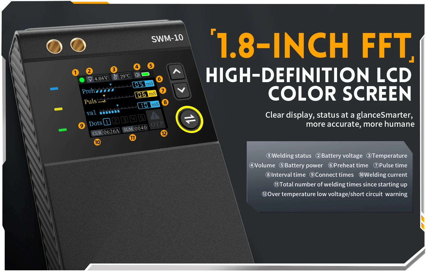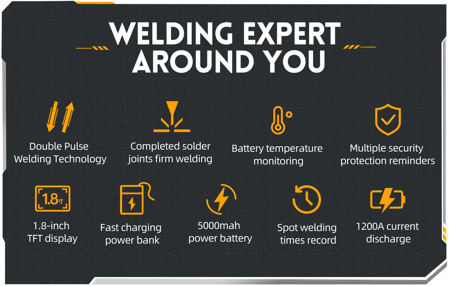 ●SWM-01 portable handheld spot welding machine is an efficient, convenient, and easy-to-carry spot welding tool.Double pulse spot welding technology is adopted to make the welding more stable and firm, and it also has the function of a power bank.