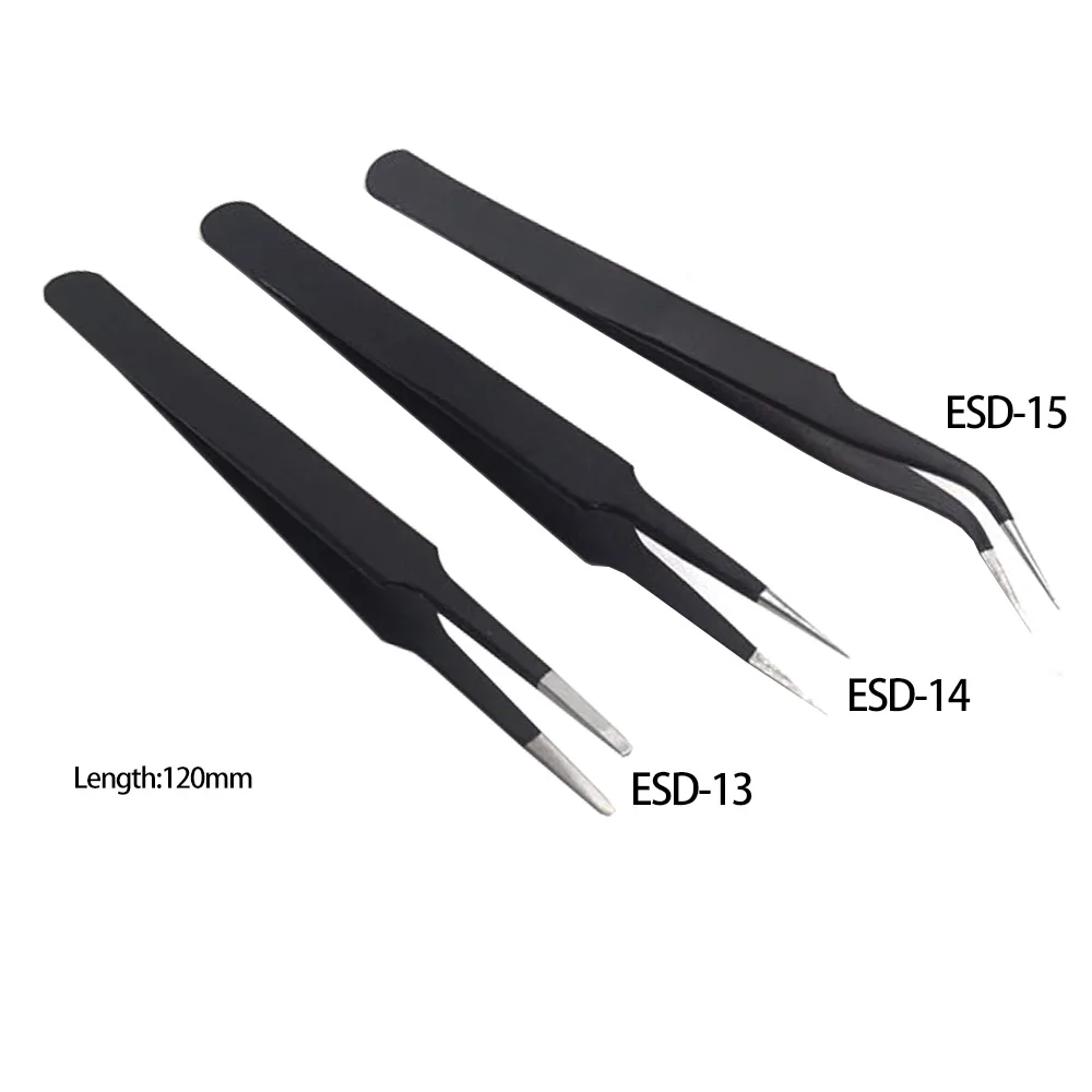 ESD-15: This tweezers bent 45 degrees, suitable for removing parts in narrow places.