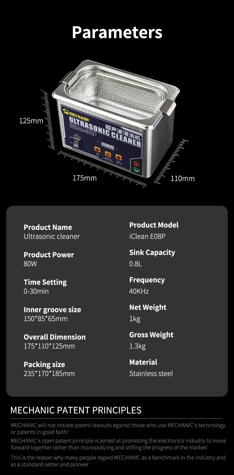 Product Details of MC iCLEAN-E08P ULTRASONIC CLEANER